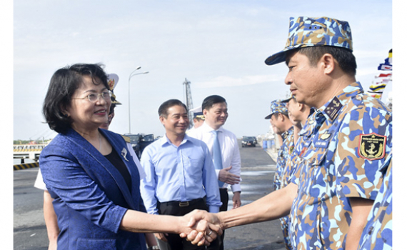 Phó Chủ tịch nước Đặng Thị Ngọc Thịnh đề nghị các cán bộ, chiến sĩ phát huy truyền thống đánh thắng trận đầu của Hải quân nhân dân Việt Nam, không ngừng...