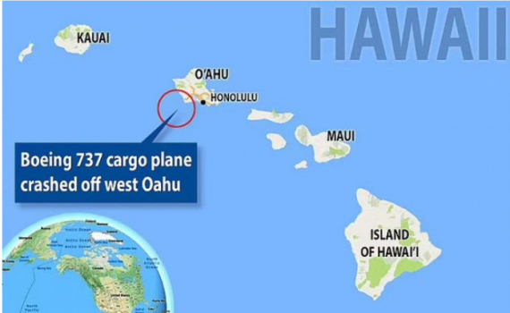 Một máy bay chở hàng Boeing 737 với hai người trên khoang đã bị lao xuống biển ở khu vực ngoài khơi Honolulu, Hawaii sau khi gặp sự cố động cơ.