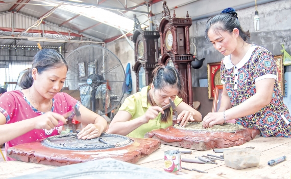 Bất chấp những khó khăn, thăng trầm của làng nghề, chị Tạ Thị Tươi, thôn Hữu Bộc, xã Hồng Thái (Kiến Xương) vẫn duy trì và phát triển cơ sở chạm bạc với...