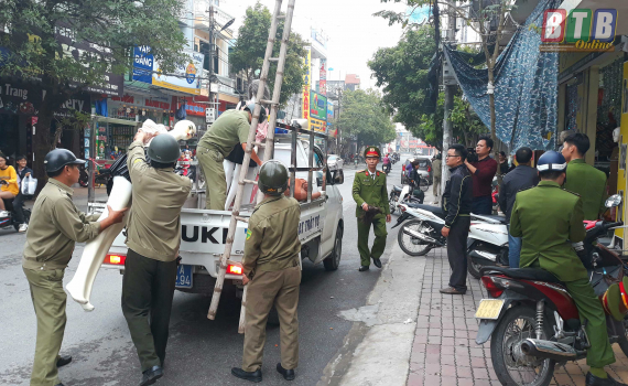 Sáng 27/12, UBND Thị trấn Quỳnh Côi (Quỳnh Phụ) tổ chức đợt cao điểm giải tỏa, chống lấn chiếm, sử dụng trái phép vỉa hè, hành lang an toàn giao thông...