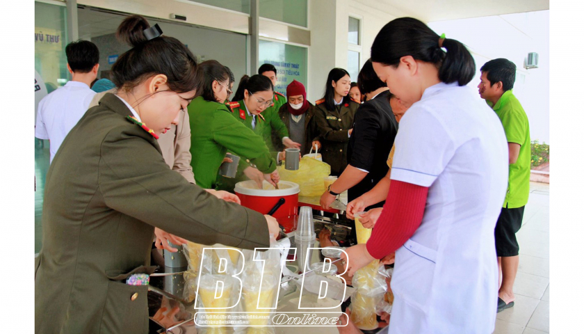 Phát cháo miễn phí cho bệnh nhân đang điều trị tại Bệnh viện Đa khoa huyện Hưng Hà