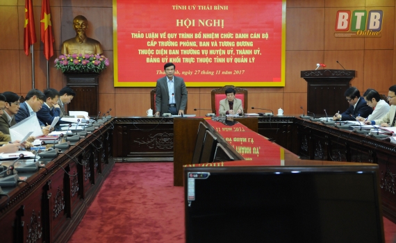 Chiều ngày 27, 28/11, Thường trực Tỉnh ủy tổ chức hội nghị thảo luận về quy trình bổ nhiệm chức danh cán bộ cấp trưởng phòng, ban và tương đương thuộc...