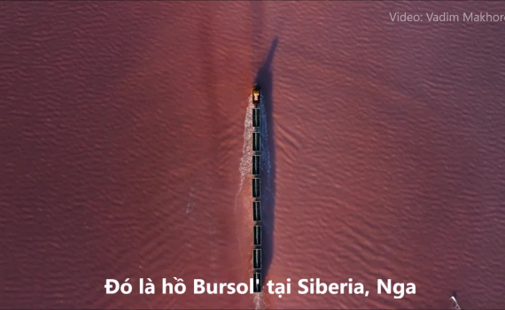 Chuyến tàu đi trên hồ nước màu hồng