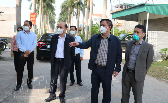 Đồng chí Nguyễn Khắc Thận, Phó Bí thư Tỉnh ủy, Chủ tịch UBND tỉnh kiểm tra, chỉ đạo công tác khoanh vùng, dập dịch tại xã Nguyên Xá, huyện Vũ Thư