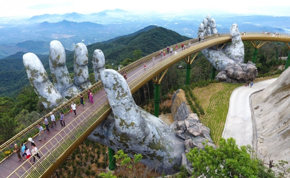 Rất nhiều người đã ngỡ ngàng trước khung cảnh thiên nhiên ngoạn mục, hút tầm mắt khi đến thăm cây cầu Vàng tại Đà Nẵng.