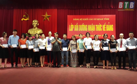 Sau 5 ngày tham gia lớp bồi dưỡng nhận thức về Đảng (21 - 25/5), chiều ngày 25/5, Đảng bộ Khối các cơ quan tỉnh tổ chức lễ bế giảng và trao chứng nhận cho...