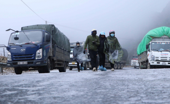 Sáng ngày 11/1, tại khu vực đèo Ô Quý Hồ, thị xã Sa Pa, ô tô, xe máy và thậm chí là cả người đi bộ đều có thể bị trượt nếu chỉ cần có chút bất cẩn.