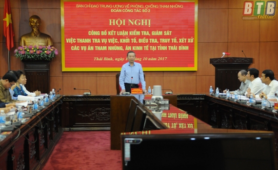 Hội nghị công bố kết luận kiểm tra, giám sát việc thanh tra vụ việc, khởi tố, điều tra, truy tố, xét xử các vụ án tham nhũng, án kinh tế tại tỉnh Thái Bình