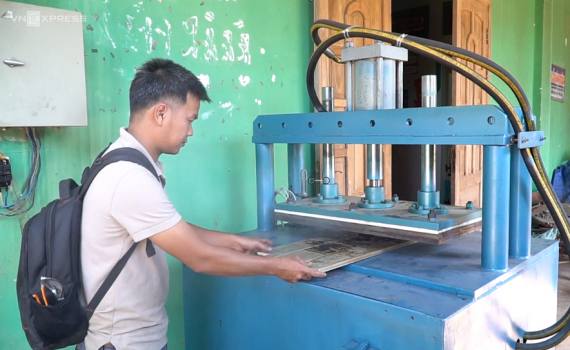 Sau 3 tháng nguyên cứu, anh Đặng Quốc Vĩnh chế tạo thành công máy in logo trên gỗ, sản phẩm giúp tiết kiệm điện và nhân công cho doanh nghiệp.