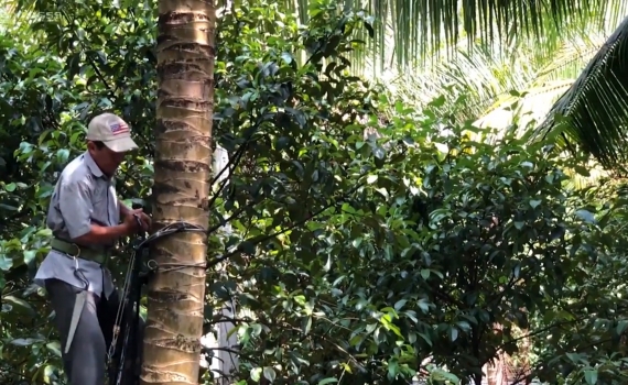 Kỹ sư trẻ chế dụng cụ leo dừa thẳng đứng