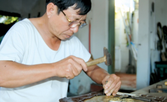 Nắm giữ nhiều bí quyết của làng nghề chạm bạc cộng với đôi tay tài hoa và óc sáng tạo, ông Đinh Quang Thắng ở thôn Nam Hòa, làng nghề chạm bạc Đồng Xâm...