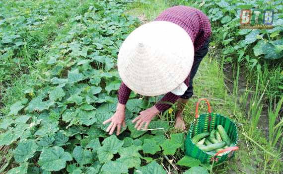 Nông dân An Châu trồng dưa chuột, bí không giàn thu lãi cao