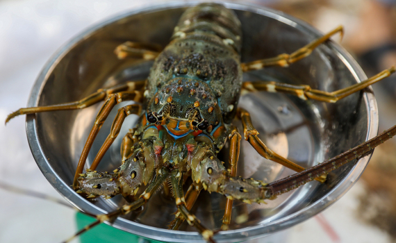 Việc thực hiện cách ly xã hội khiến sức tiêu thụ đi xuống, giá tôm hùm baby tại các vựa nuôi giảm mạnh so với đợt giải cứu tháng 2.