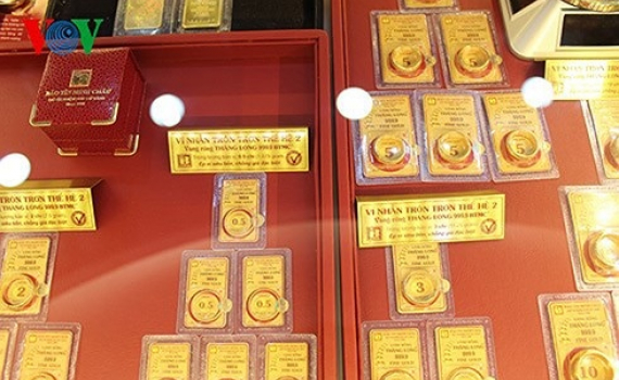 Giá vàng SJC trong nước giảm 10.000 đồng/lượng cùng lúc giá vàng thế giới giảm còn 1.240 USD/oz.