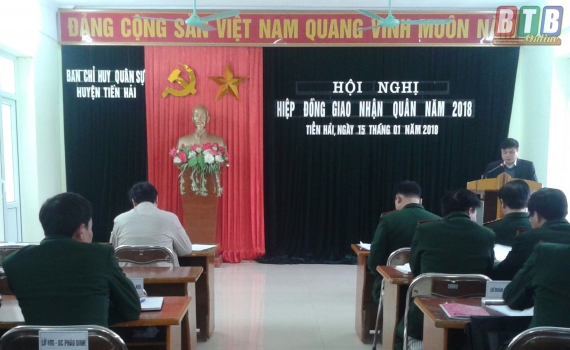 Chiều ngày 15/1, huyện Tiền Hải tổ chức hội nghị hiệp đồng giao, nhận quân năm 2018 với các đơn vị nhận quân.