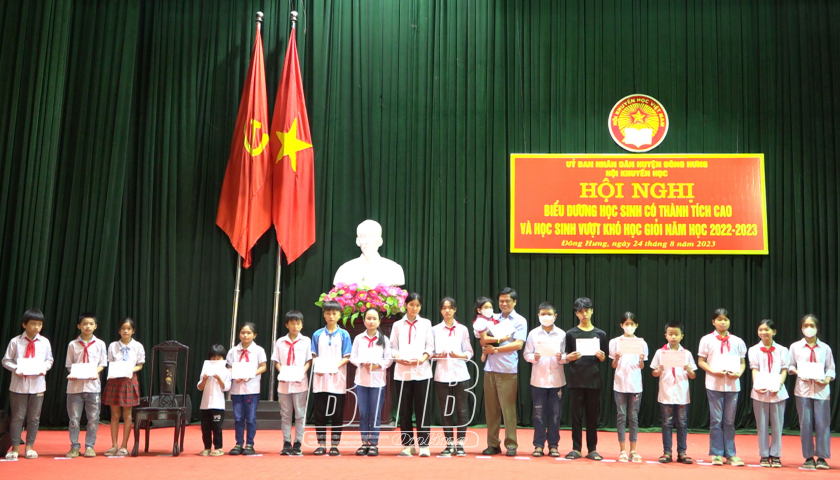 Sáng ngày 24/8, Hội Khuyến học huyện Đông Hưng tổ chức biểu dương, trao thưởng cho các học sinh có thành tích cao, học sinh vượt khó học giỏi năm học 2022...