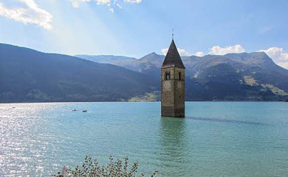 Tháp chuông giữa hồ Resia