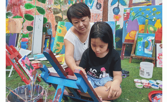 Giữa không gian ngổn ngang bột màu và những bức tranh còn dang dở của học trò, cô giáo Phan Thị Kim Thùy, Chủ nhiệm Câu lạc bộ (CLB) Phát triển mỹ thuật...