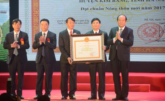 Ngày 22-12, Đảng bộ, chính quyền và nhân dân huyện Kim Bảng, tỉnh Hà Nam đã tổ chức Lễ đón nhận Bằng công nhận huyện đạt chuẩn nông thôn mới và Cờ thi đua...