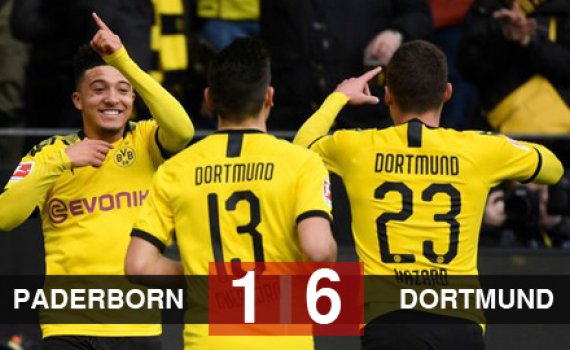 Kết quả Paderborn 1-6 Dortmund: Sancho lập hat-trick, Dortmund kiên trì bám đuổi Bayern