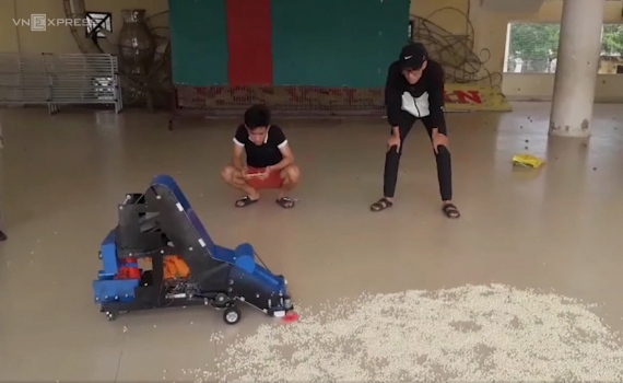 Học sinh chế máy thu gom nông sản ở Ninh Thuận