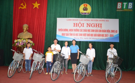 Liên đoàn Lao động huyện Hưng Hà tuyên dương, khen thưởng con công nhân viên chức lao động đạt thành tích cao trong học tập