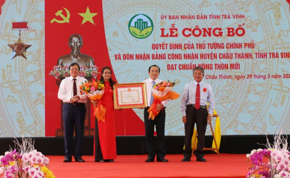 Ngày 29-3, UBND tỉnh Trà Vinh tổ chức lễ công bố quyết định của Thủ tướng Chính phủ và đón nhận Bằng công nhận huyện Châu Thành đạt chuẩn nông thôn mới...