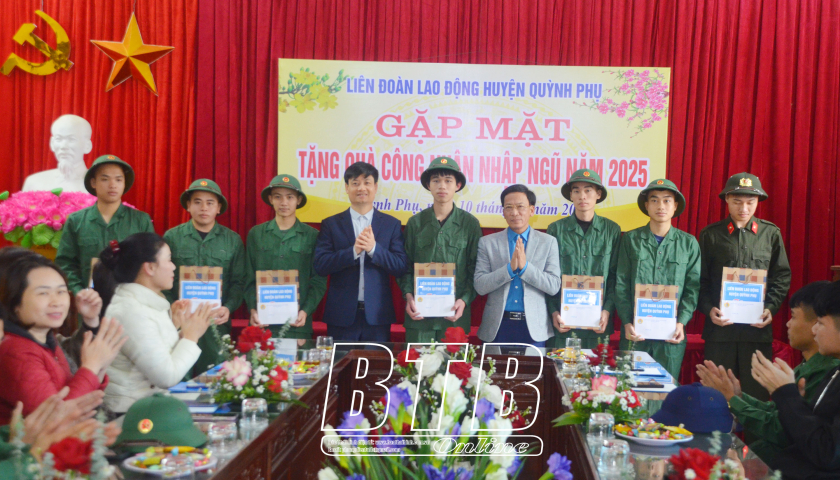 Chiều ngày 10/2, Liên đoàn Lao động huyện Quỳnh Phụ tổ chức gặp mặt, tặng quà công nhân lao động là đoàn viên công đoàn nhập ngũ năm 2025.