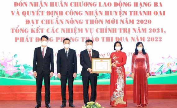 Sáng 7/1, huyện Thanh Oai, Hà Nội tổ chức Lễ công bố và đón nhận Huân chương Lao động hạng Ba của Chủ tịch nước; Quyết định của Thủ tướng Chính phủ công...
