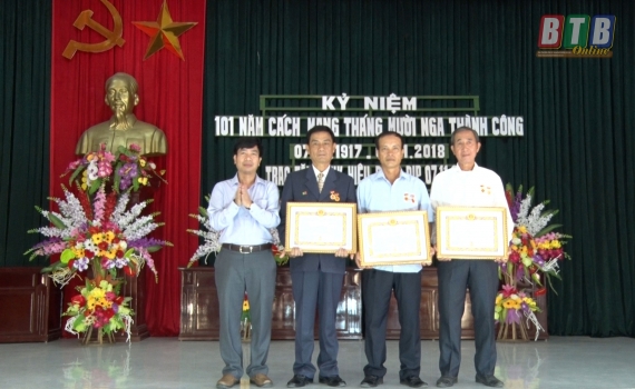 Quỳnh Phụ: Trao tặng huy hiệu Đảng nhân dịp 101 năm Cách mạng Tháng Mười Nga