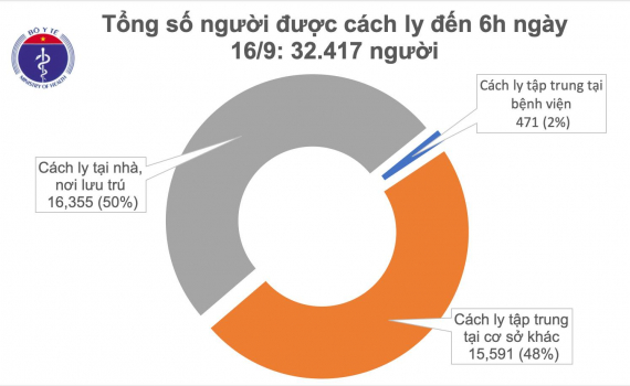 Bản tin sáng 16/9 của Ban Chỉ đạo Quốc gia phòng chống dịch COVID-19 cho biết không ghi nhận ca mắc COVID- 19 mới, số lượng ca mắc mới tính từ ngày 25/7...