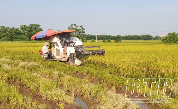 Quỳnh Phụ: Khẩn trương thu hoạch lúa xuân