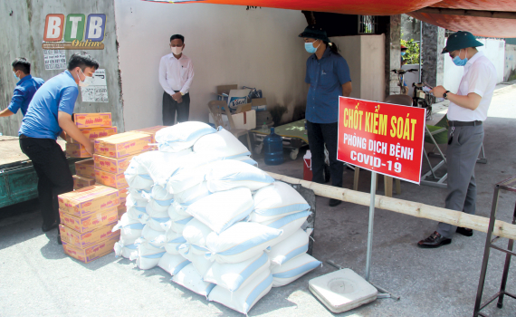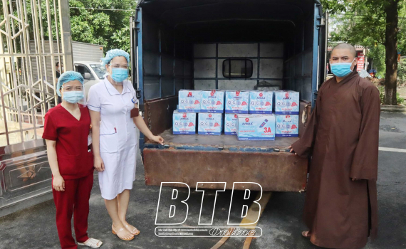 Ngày 14/5, đại diện chư tăng, Phật tử chùa Từ Xuyên (phường Hoàng Diệu, thành phố Thái Bình) đã trao 7 tạ gạo, 20 thùng nước lọc và một số nhu yếu phẩm...