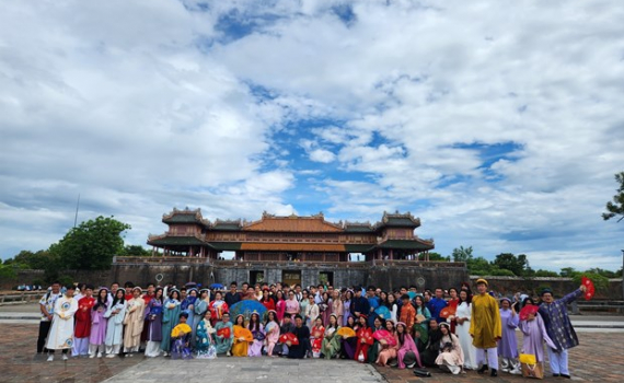 Các Kiều bào Trẻ đã được trải nghiệm mặc áo dài truyền thống, đội mấn và du ngoạn khung cảnh nên thơ xứ Huế, ghé thăm một số di tích nổi tiếng như Lăng...