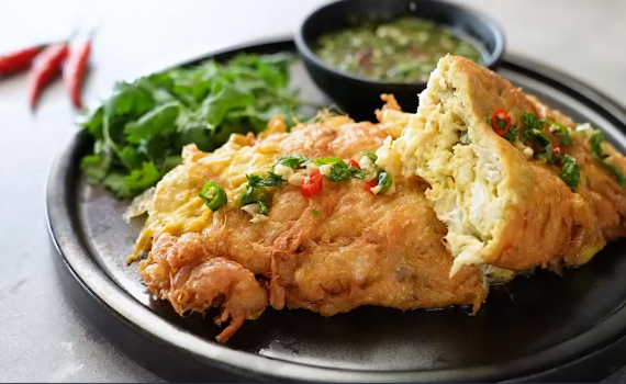 Món trứng ốp la với cua kiểu Thái