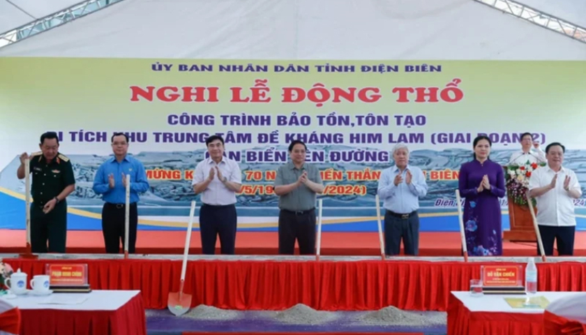 Thủ tướng Phạm Minh Chính dự khởi công công trình tôn tạo Di tích Khu Trung tâm đề kháng Him Lam, lễ gắn biển đường Phạm Văn Đồng