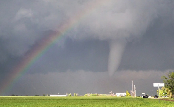 Video ngoạn mục ghi lại cảnh cầu vồng và lốc xoáy cùng xuất hiện