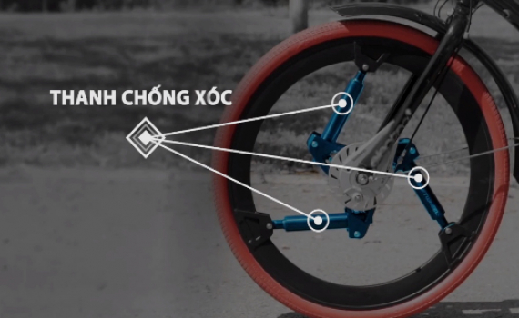 Bánh xe sử dụng công nghệ tách ly vành và trục bằng 3 thanh chống xóc giúp hấp thụ chấn động, giảm xóc tối đa.