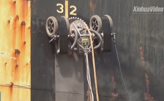 Robot leo thân tàu loại bỏ gỉ kim loại