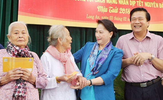Chủ tịch Quốc hội Nguyễn Thị Kim Ngân thăm, trao quà Tết tại Long An và Bến Tre
