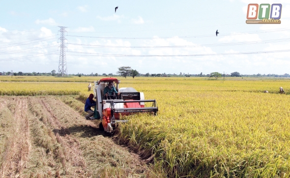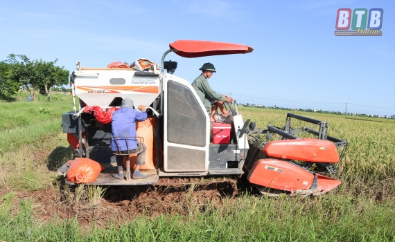 Quỳnh Phụ: Đẩy nhanh tiến độ thu hoạch lúa mùa