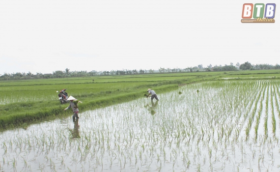 Kiến Xương khẩn trương hoàn thành gieo cấy và phòng trừ bệnh lùn sọc đen trên lúa mùa