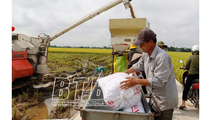 Đông Hưng: Máy gặt xuống đồng, nông dân không còn vất vả