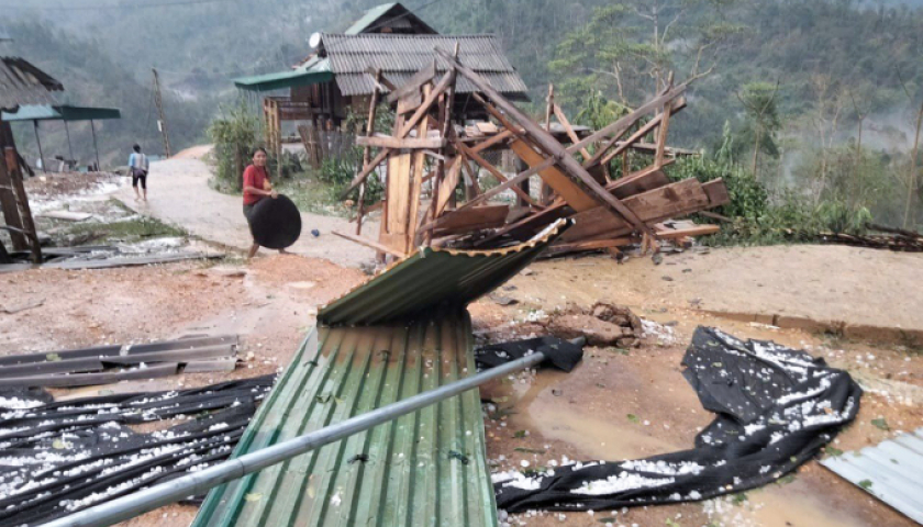 Nhiều xã ở huyện Tương Dương xuất hiện mưa đá kéo dài 10-30 phút, nhiều viên to bằng quả trứng gà khiến hơn 200 ngôi nhà thủng mái và hư hỏng.