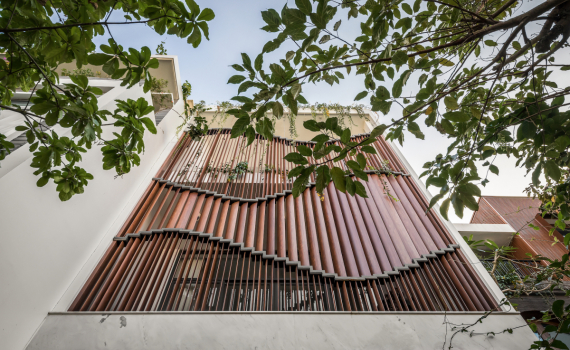 Hệ lam tạo nên lớp vỏ thứ hai cho công trình và thay đổi theo nhu cầu người sử dụng, khiến mặt tiền nhà như biết cử động.