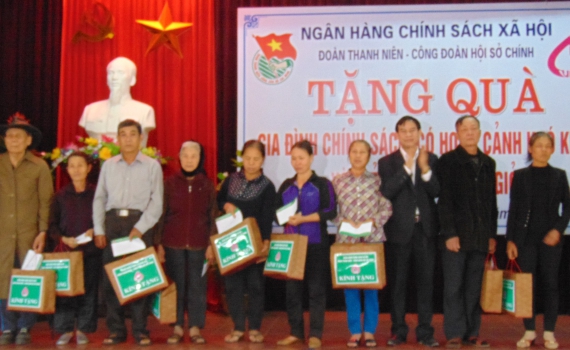 50 gia đình chính sách, gia đình có hoàn cảnh khó khăn trên địa bàn xã Minh Lãng, huyện Vũ Thư được nhận quà của Công đoàn Hội sở chính, Đoàn Thanh niên...