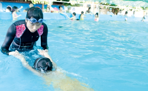 Tràn đầy hứng khởi và sảng khoái là cảm xúc hiện lên trên gương mặt của những bạn nhỏ sau mỗi vòng bơi, mỗi lần ngụp lặn thỏa thích dưới làn nước trong...