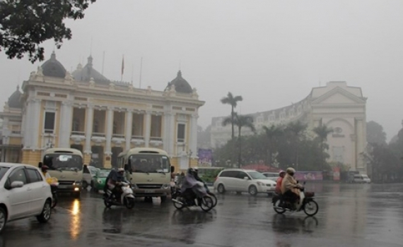 Khu vực Hà Nội nhiều mây, sáng và đêm có mưa phùn và sương mù, gió nhẹ, trời rét. Độ ẩm từ 68 - 97%.