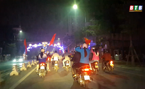 Ngay sau chiến thắng của đội tuyển U23 Việt Nam trước U23 Iraq, tại các tuyến phố chính của thành phố Thái Bình như Lê Lợi, Hai Bà Trưng, Trần Hưng...