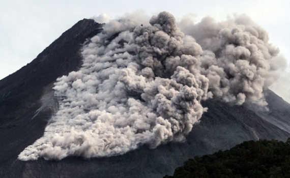 Núi lửa Merapi ở đảo Java của Indonesia hôm qua hoạt động trở lại. Nham thạch nóng đỏ phun trào từ miệng núi, tràn xuống khu dân cư và đường đi xung...